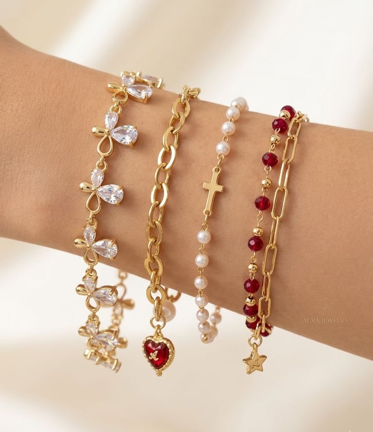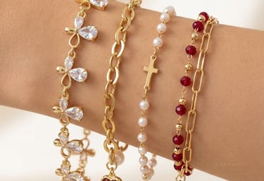 Elegancia en cada movimiento. Una selección exclusiva de pulseras y brazaletes creados para destacar tu esencia personal con el brillo eterno del oro y las piedras finas.